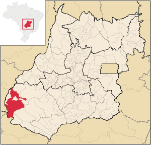 Em vermelho, a região de Mineiros-GO, local onde nasceu tia Eva